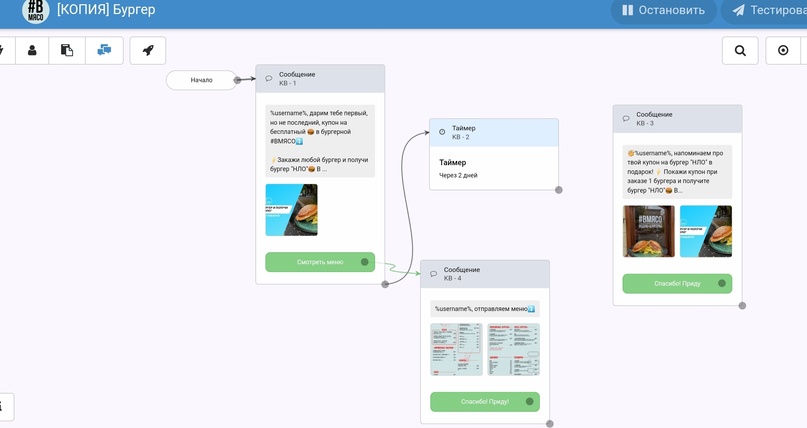 Конечно же, подробности скриптов, условий и самой рассылки раскрывать не буду. Все пишется индивидуально под Заказчика, опираясь на фирменный стиль, ценности и tone of voice заведения.
